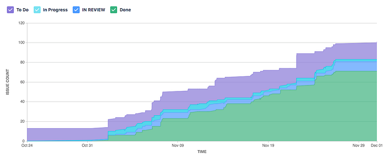 Cumulative Flow Diagrams can tell you whether bottlenecks are forming, the rate of change of the inflow and outflow, and more. They are a great way to help manage team work execution.