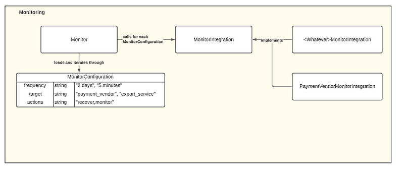 endHere, the standard interface for a MonitorIntegration is #call and the result which contains a status and a message . While an actual implementation will contain many more things, this fundamentally is the core of determining a system’s status.