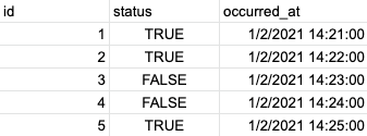 This would only log the things we actually care about —outages or recoveries, and allow us to assume the last known status for any time period afterwards.